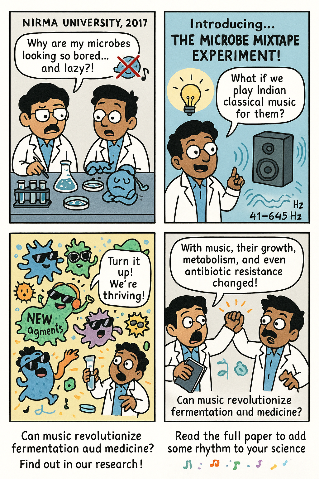Effect of a type of Indian classical music (Raag Kirwani) comprised of the sound corresponding to a frequency range of 38–689 Hz, on microbes